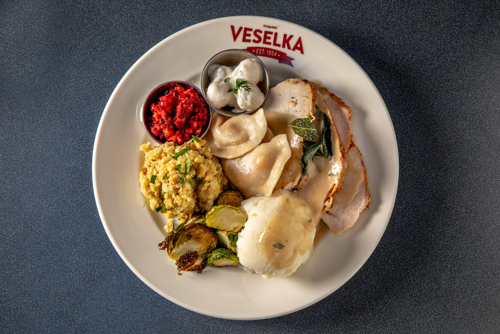 Your choice of a turkey or vegetarian Thanksgiving dinner plate (serving for 1) that includes the following: